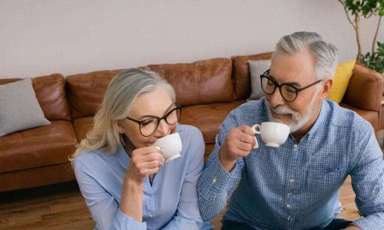 Hans and Greta enjoying tea in their cozy, newly-floored apartment | Source: Midjourney