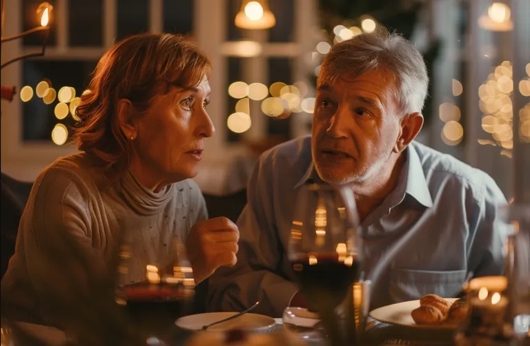 A mature couple having a serious conversation | Source: Midjourney