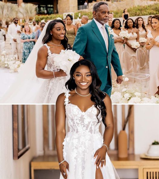 Simone Biles’s wedding costume details sent her followers into a buying frenzy as they hoped to copy her understated elegance. As fans hurried to acquire the clothes she wore, they sold out in no time.