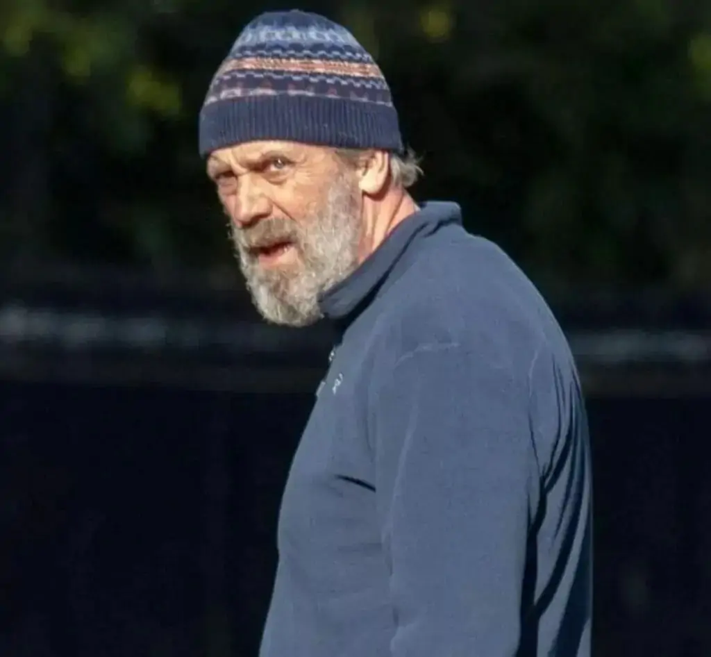 Hugh Laurie, a well-known actor, was seen out in the sun walking his beloved dog. He didn’t look like his usual energetic self.